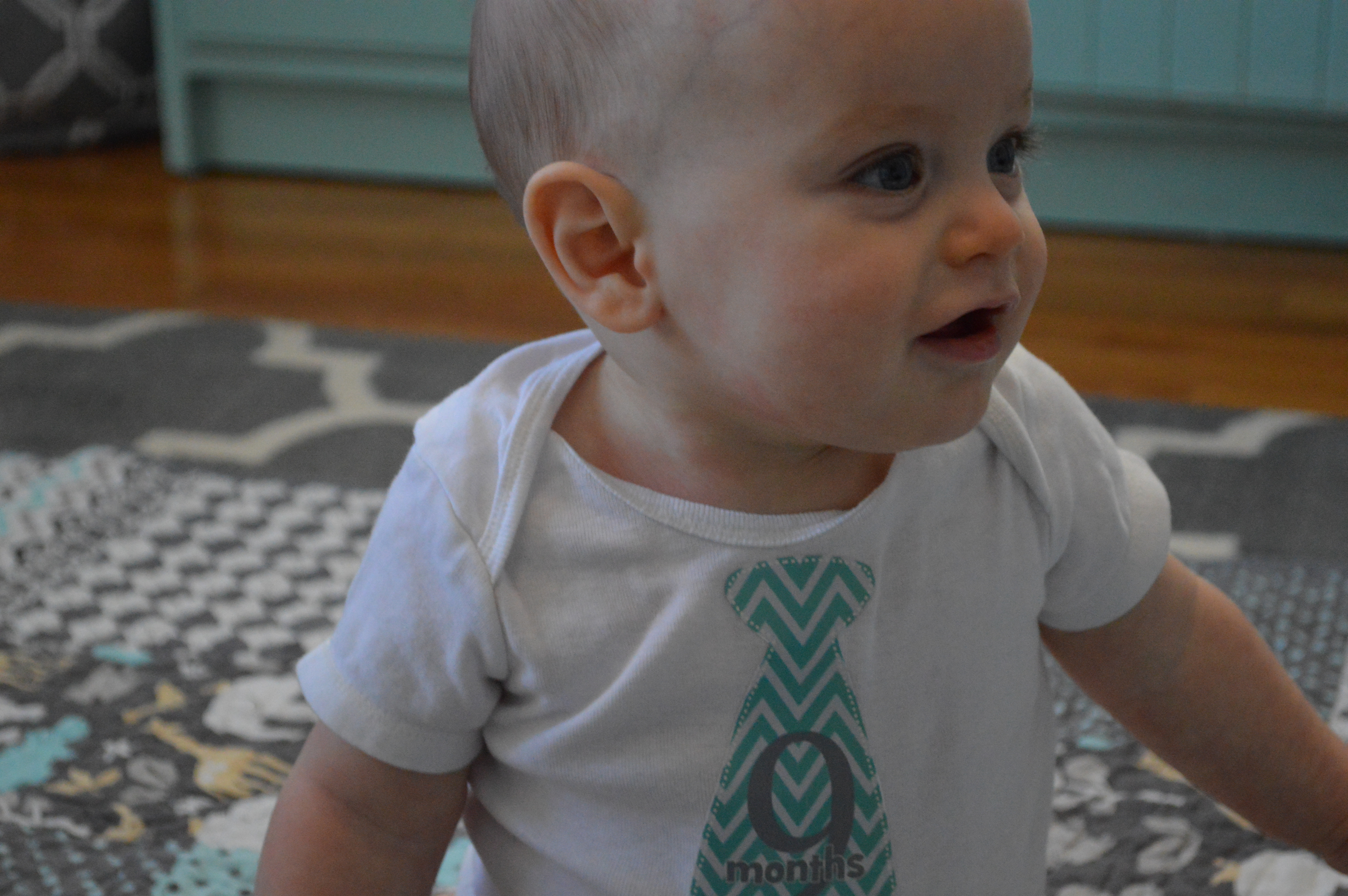 Cade is still sleeping like a champ at night and typically goes down around 7 and sleeps until 7 in the morning. He has reverted back to his old ways when napping at daycare. I’ve told him that this stresses mommy out, but he continues to insist that there are way too many fun things to do and look at to sleep while he is there. At home, he is still taking three pretty decent naps. Probably recovering from his daycare days! At his 9 month checkup, Cade weighed 17 lbs 1 oz and was 27.25 inches long. His weight gain was slow this month, so we have to go back for a weight check in a few weeks. I’m convinced it’s because he never sits still.
